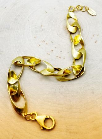 Sterling silver and 18 karat gold vermeil satin link bracelet.