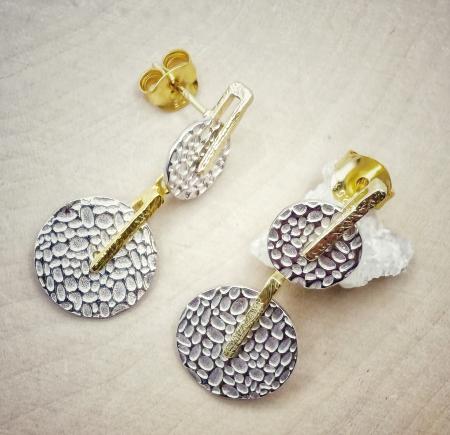 Sterling silver and 18 karat gold vermeil textured circle earrings.
