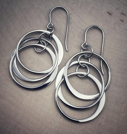 Sterling silver triple circle dangle earrings